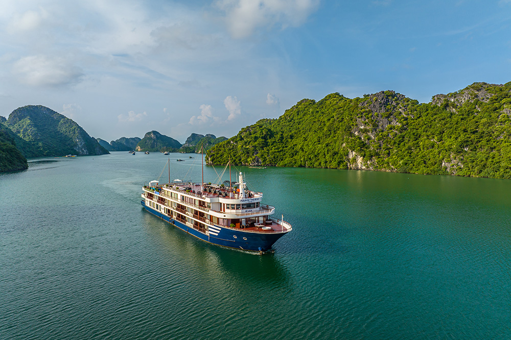 Aqua Of The Seas is a 5 star luxury super yacht offering an ultimate cruising experience through the spectacular landscape of Halong Bay – Lan Ha Bay. 30 cabins all are equipped with a private balcony and ocean-view bathtub. Aqua Of The Seas is also one of the minority of luxurious metal cruises possessing luxury restaurant, an outdoor pool, Gym, Spa… With full facilities, professional service Aqua Of The Seas promises to bring guests the most memorable experience